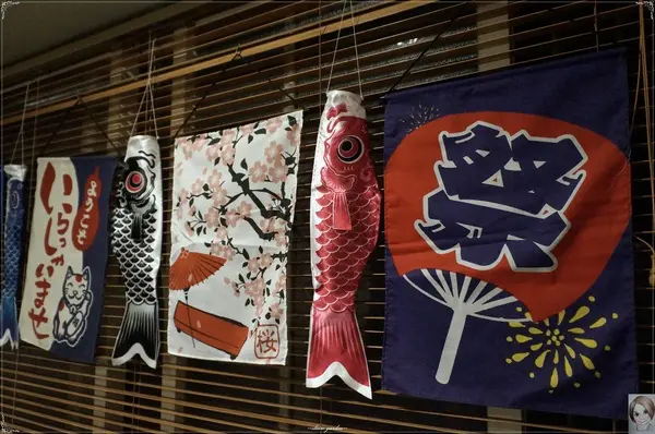 店內有好多飄揚的旗幟