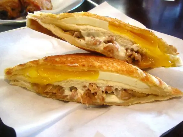 熱壓吐司鹹口味基本都有水牛乳酪與太陽蛋,太陽蛋可以選擇全熟或是半熟,