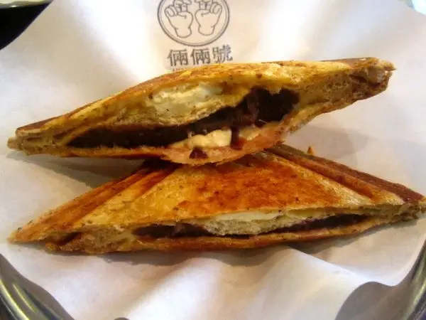 倆倆號的主打商品是甜口味熱壓吐司、鹹口味熱壓吐司,