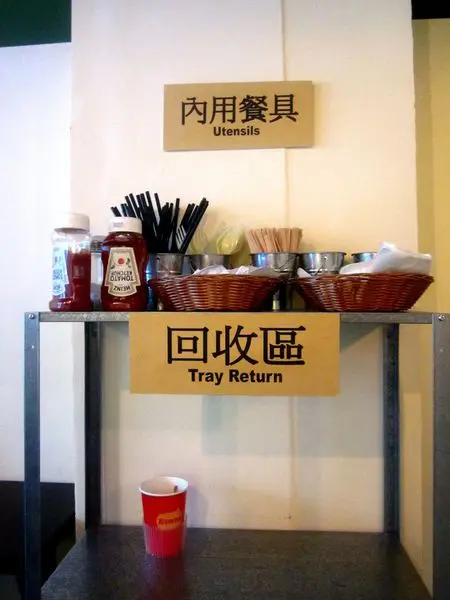 記得把自己的餐盤用具與垃圾,通通放到回收區來讓店員統一收回。