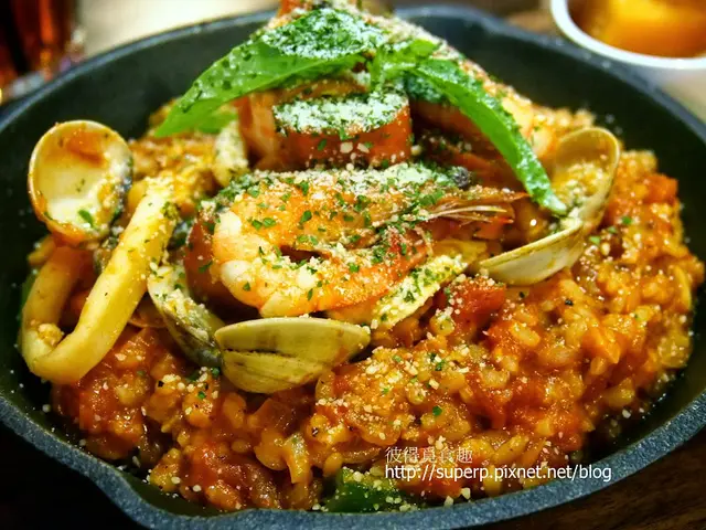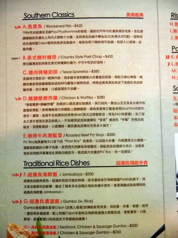 紐澳良海鮮飯$350(這就是著名的Jambalaya,我是第一次吃。飯很軟,有點糊,而且番茄味很重。上面鋪了一堆海鮮,灑了很多起司粉。是不錯,但並沒有讓我吃了還想再吃。不知道這種的算不算正統?)