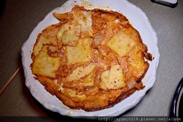 這一款沒有添加麵粉的蛋液基底煎餅.泡菜豆雞