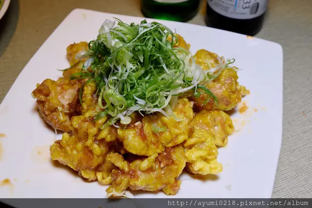 外皮金黃.醬汁也是甜甜的.搭配上頭的蔥花超對味而且解膩