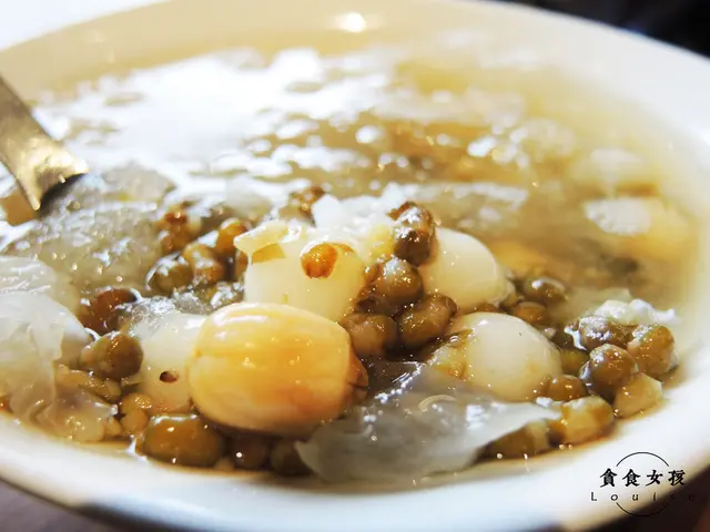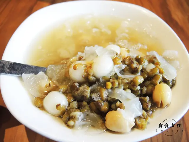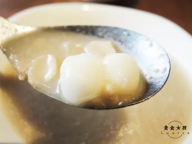 露易絲偏愛這個,每次撈起總是滿滿餡料。有別於一般古早甜點店,雙連O仔湯的甜湯喝起來不會太甜膩、也不會有愈喝愈渴的情況,蠻喜歡這樣清爽的甜湯,蓮子、白木耳都是對女生身體很好的營養食物,而它的湯圓有令我驚艷,看似圓圓白白小顆,吃起來帶點Q彈滋味,默默在心中給他第一名湯圓的位置。