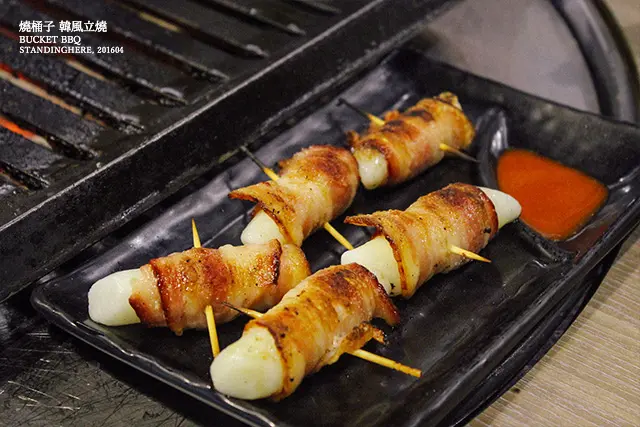 百搭的培根片捲上韓國年糕, 烤得脆脆的,