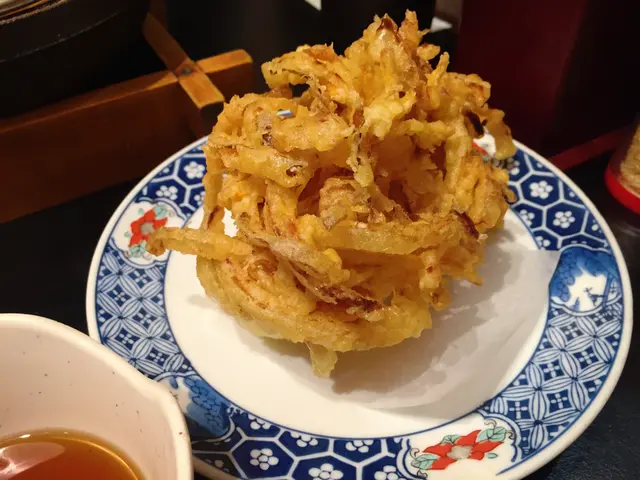 蔬菜餅天婦羅90元,幾種蔬菜切成絲炸成一球,雖然不是很好分解,但是吃起來帶有點蔬菜清甜的味道很好吃。