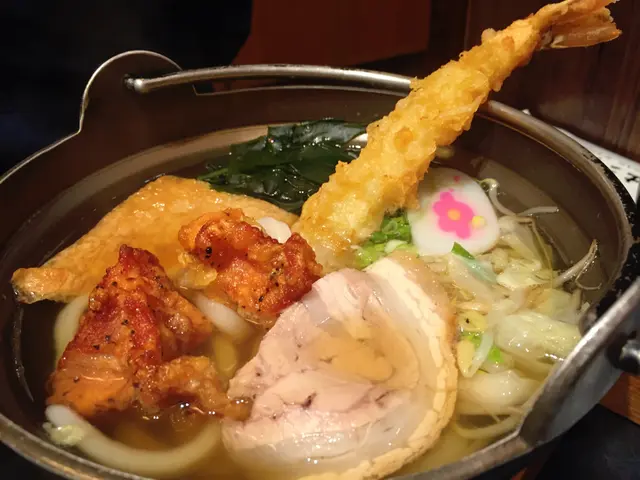 大使烏龍麵小的250元,菜單上寫是人氣餐點,有叉燒肉、炸蝦、炸雞還有一些配料,看起來超豐富的。
