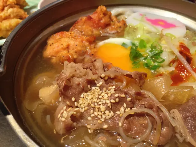 龍馬烏龍麵小的240元,有牛肉、炸雞和一顆半熟蛋,微辣的湯頭喝起來更過癮。