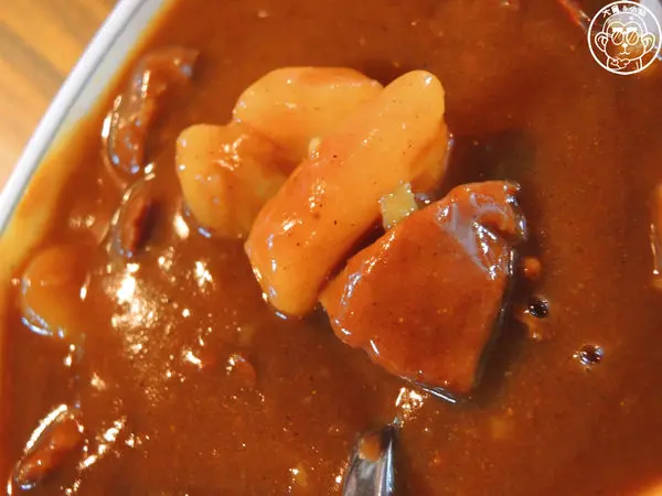 外公時期的日式咖哩只有醬汁沒有肉塊,寅樂屋的從外表就看到有豐富蔬菜與肉塊