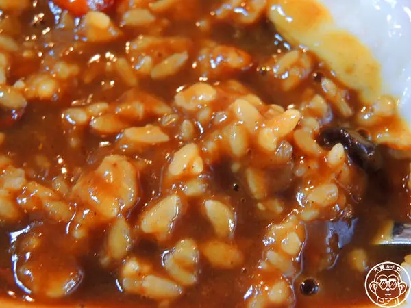 飯上的葡萄乾也很加分,讓微辣的咖哩更順口,最後一口的米飯仍舊好吃