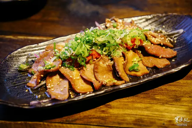 炙燒冷拌牛舌(290元): 熱烹調冷處理牛舌切成薄片但依舊不失它的Q度與咬勁,不會因為是冷拌的方式而變的冷硬油膩,可看出廚師的用心,帶有炙燒香的牛舌不僅嫩度十足,還利用涼拌料理的方式增加了彈牙口感,很好吃。