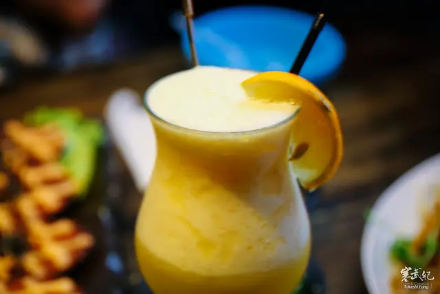3號特調(230元右邊): 加入了百香果、檸檬、萊姆汁,喝起來偏酸,口味相當棒!喝不出什麼酒味,基底為伏特加,熱帶風情十足的一品調酒,包子爸很愛!