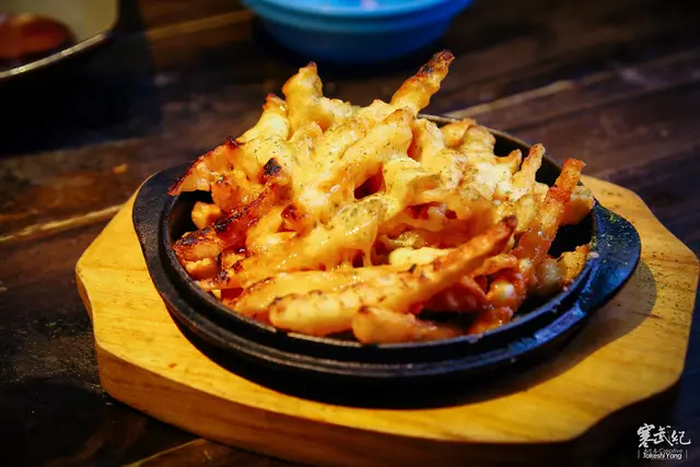 明太起司薯條(150元):波浪型的薯條炸的酥軟,配上明太子與起司,這熱量一定爆表啊!哈!但那誘人的色澤與香氣還是讓人無法抗拒誘惑,不到一會兒就搶食一空!