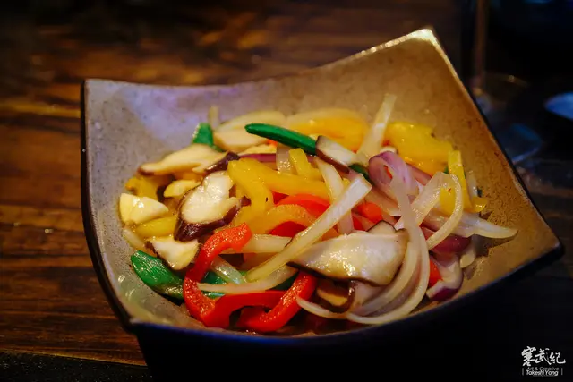 鮮炒綜合野菜(120元):這道鮮炒綜合野菜用料十足,有洋蔥、甜椒、四季豆、香菇片、蒜頭,口感爽脆,野菜鮮甜,簡單調味就好好吃!