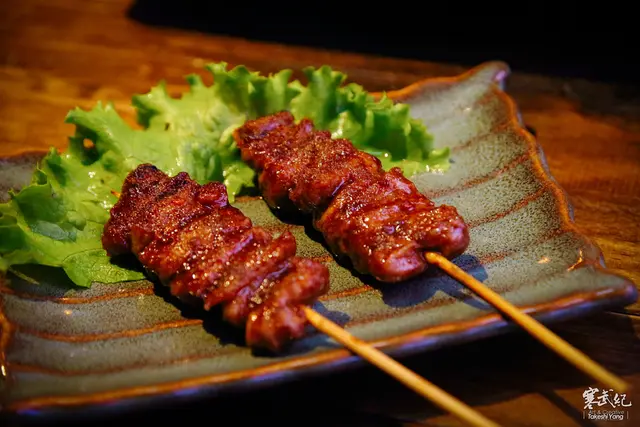 北京烤鴨風味串(70元):竟然在燒烤店會出現北京烤鴨的蹤跡,讓人不得不佩服店家的思維,是想讓客人在同一間店就可以嚐遍各式的種類嗎?而北京烤鴨的風味完完全全的呈現出來,絲毫不差!