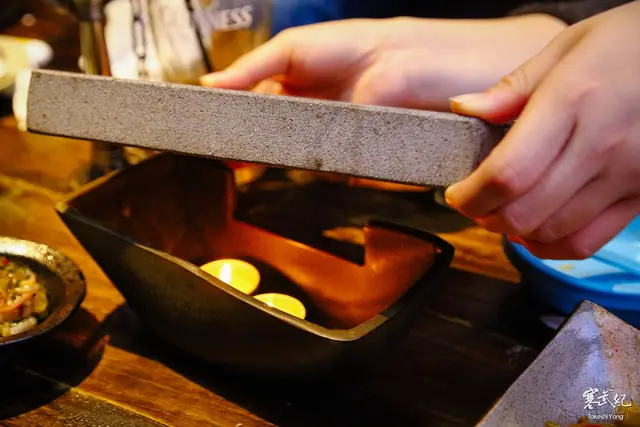 店家特製的火爐。上面鋪著石盤,這樣肉類料理可以保持熱度,不至於冷掉後口感變差,這店家真的很細心~~