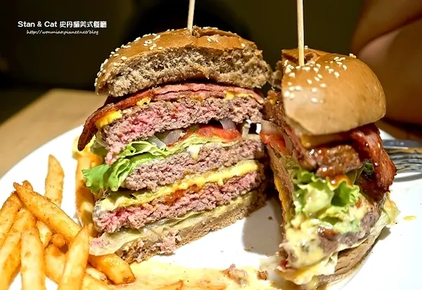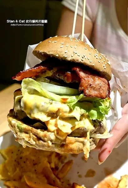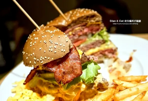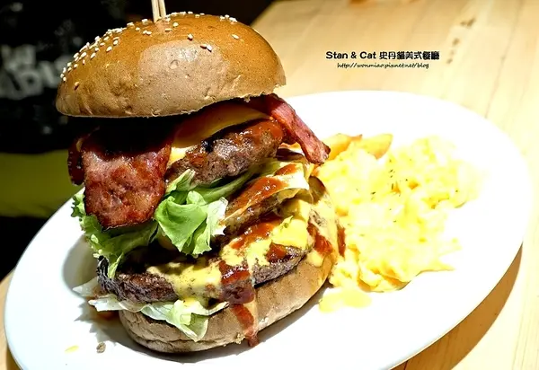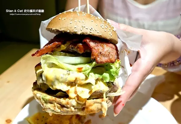 層層堆疊起的漢堡,要兩手通力合作才勉強hold得住!