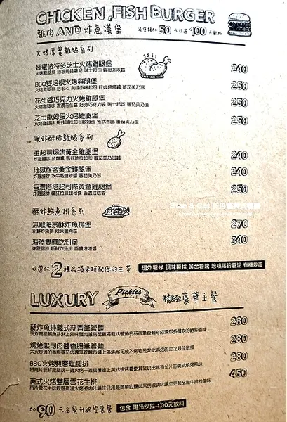 菜單內除了漢堡,三明治,各種炸物拼盤,沙拉... 外,