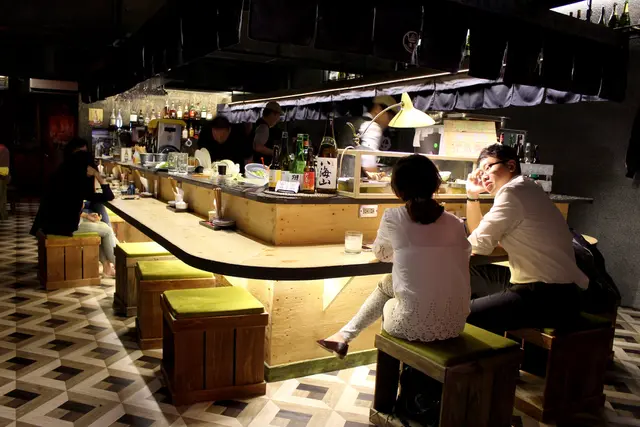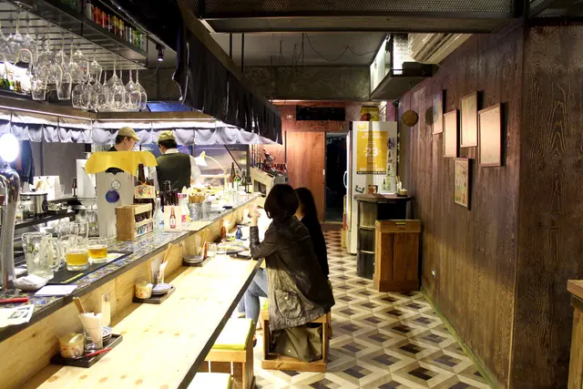 賣著著各式各樣的酒類,提供吧台和多人桌,帶點浪漫的灰暗燈光,