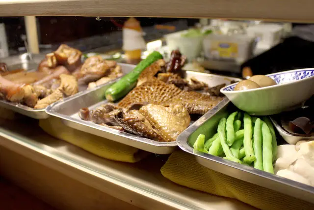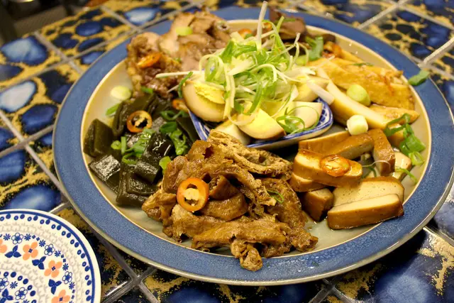 豬腳、花干、滷蛋、海帶、甜不辣、豆干和鴨胗,