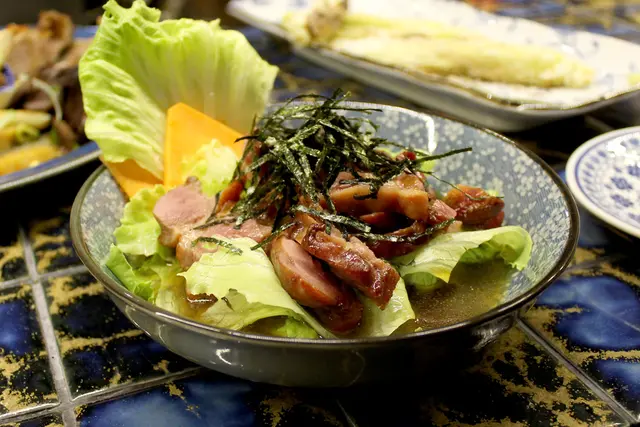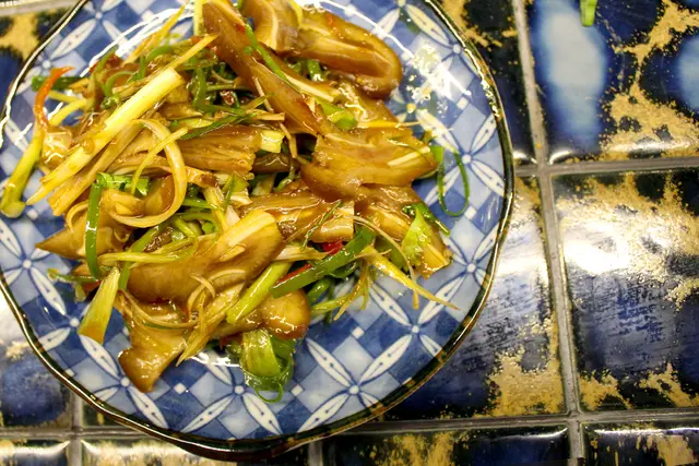 擺盤美麗少見的豬尾巴料理,也是店內的招牌下酒菜,