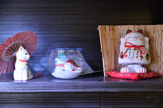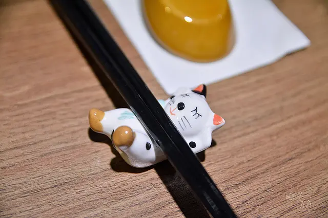 桌上的筷架很可愛,是可愛的貓或是魚。