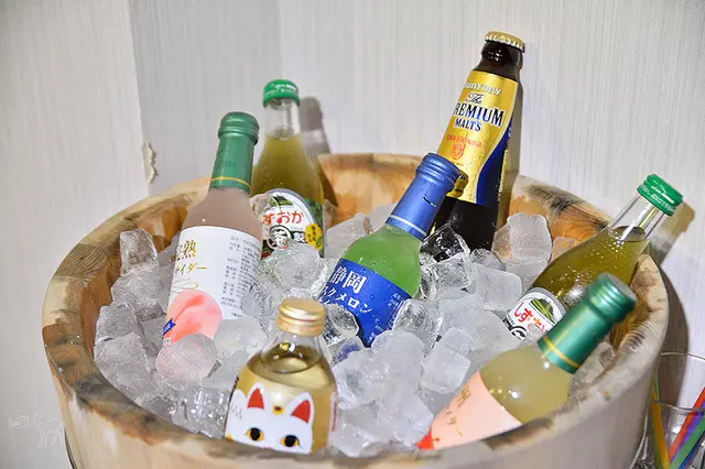 店裡飲料除了三得利啤酒外,也供應日本的汽水飲料。(未成年與開車均請勿飲酒)
