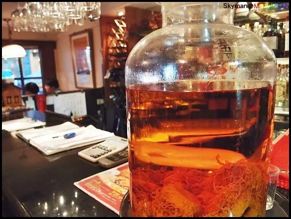 老闆私房釀的冬蟲夏草藥酒,看起來很補會噴鼻血的樣子