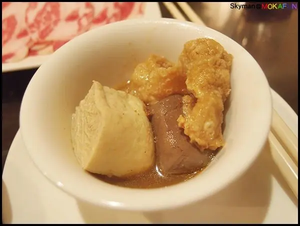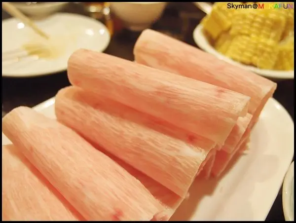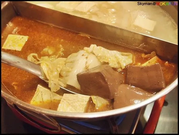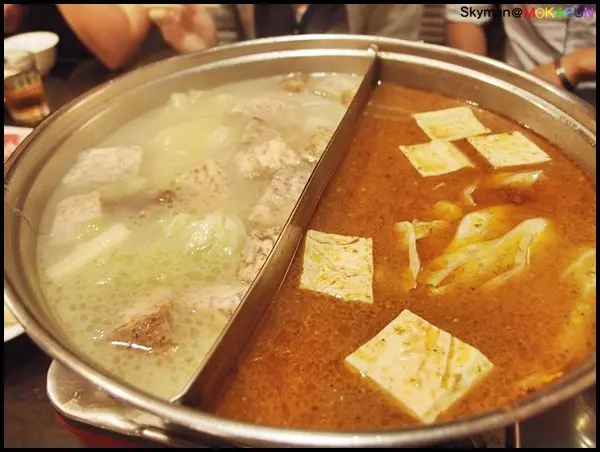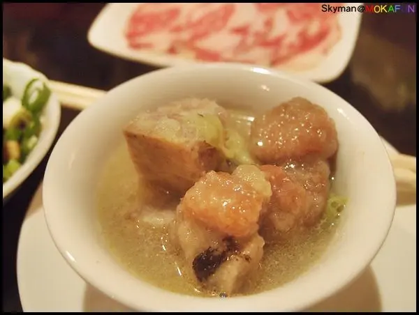 芋頭排骨湯底,湯底呈現淡淡的乳白色,順口好喝,老闆會一直過來說要記得攪一攪,免得芋頭泥在下面燒焦了,這湯底moka個人認為比麻辣鍋來的讚!