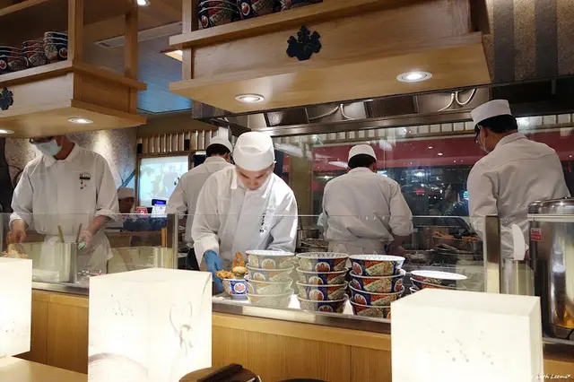 來自日本東京的人氣天丼名店金子半之助,自去年底正式登台後連續開設了兩間店鋪,分別位在台北車站與林口三井OUTLET裡,這次來到微風台北車站二樓的分店,正值晚餐時間排隊人潮不少。