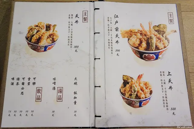 江戶前天丼390元 飯加大30元 / 上天丼 320元
