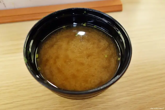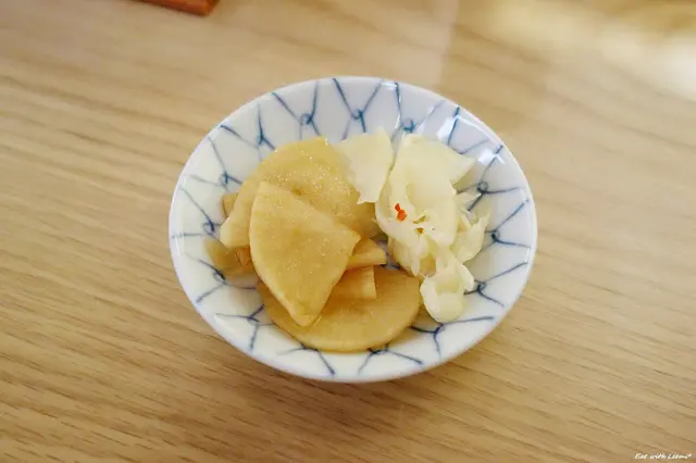 以自己平常的食量去推算其實沒加大飯量會稍嫌不夠,但炸物總是較為油膩些,吃多了飽膩感便伴隨而出現,這時搭配桌上的兩款漬物轉換一下口味還挺不錯,我喜歡帶甜味的蘿蔔片,一點點的脆口,配著吃實在清爽不少,至於醃薑的辛感又是另一種效果,點了碗味噌湯沒甚麼料,夠鹹香是蠻合口味的,只是若不是正好碰上主餐加購只要10元的活動可能不會有興趣,另外金子半之助店內免費供應的黑豆茶,僅帶點烘焙過的香氣,味道相當清淡。
