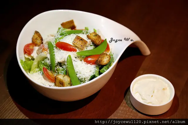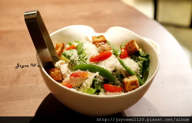 醬料本身很稠 沙拉大盆而且是裝滿的 我們用夾子其實很難均勻拌開 (( 想像一下 大家懂我的點吧 ))