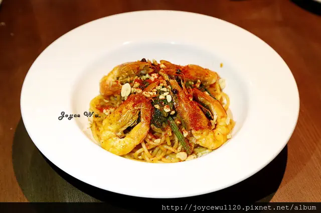 蝦頭醬拌炒麵 加入菠菜 白蝦 花生 辣粉等
