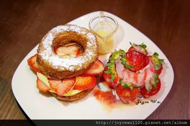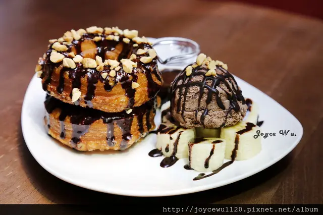目前試營運階段,正式菜單未上市,甜點選擇少,手工派 . 司康 . 可拿滋 . 冰淇淋等,大約8樣選擇,目前有的兩種口味可拿滋,都很喜歡!外酥內軟Q的極佳口感,讓人留下深刻印象,甜甜圈新體驗呀,草莓與巧克力各有不同美味,濃郁的巧克力不甜膩,草莓與卡士達的搭配,水果增加整體爽口度,比想像中更好吃,檸檬派偏酸且細緻的檸檬卡士達,整體味道很棒,香蕉巧克力派稍膩口了些,整體而言比一般美式甜點的甜度降低了一些,但如果以一般常見的甜點來說似乎又偏甜了些。