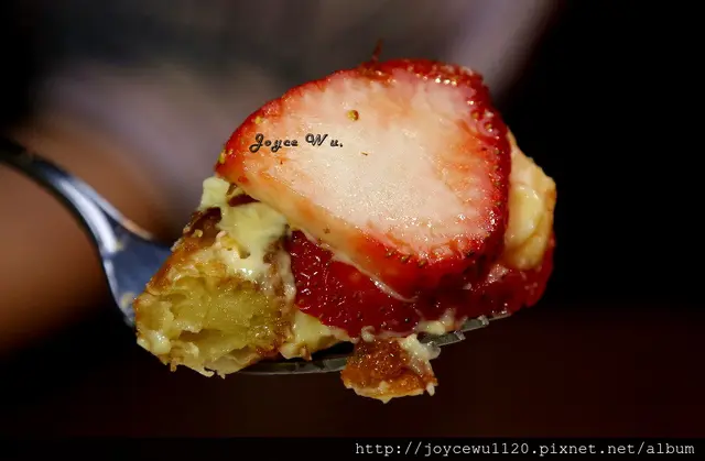 忍不住再多拍了一張 單吃卡士達加草莓片也好喜歡呢