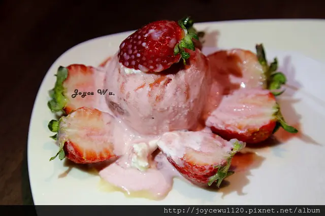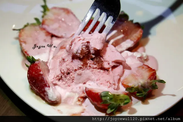 旁邊的草莓冰淇淋加上新鮮草莓 鮮奶油