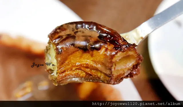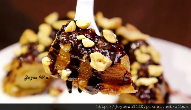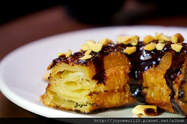 上方的巧克力醬和杏仁碎 軟Q中還帶著杏仁脆度呢