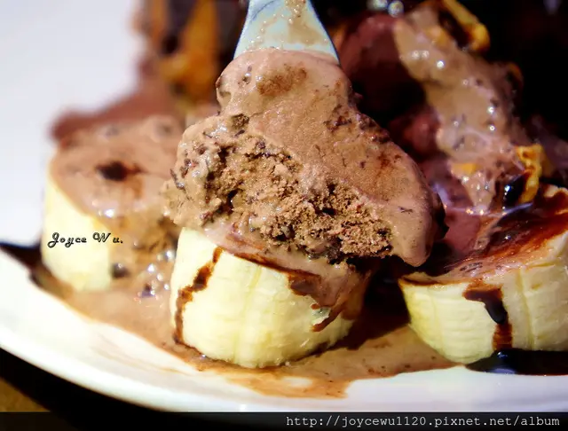 新鮮香蕉切片 卡士達醬 鮮奶油 可可粉