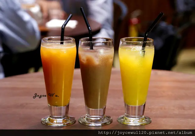 "柳橙/葡萄/鳳梨汁"(左至右) $120/杯
