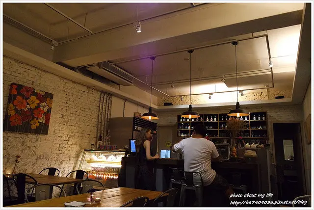工業風的水泥地、白色磚牆、燈飾和桌椅搭上昏黃光線營造出不自覺想放鬆的舒服氛圍