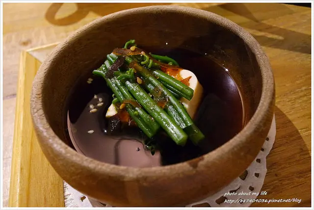 軟嫩的豆腐和爽脆的野菜(龍鬚菜)梗搭上和風醬油 很日式家常fu的沙拉