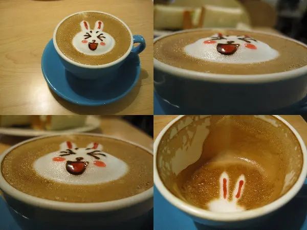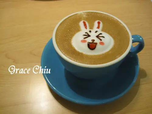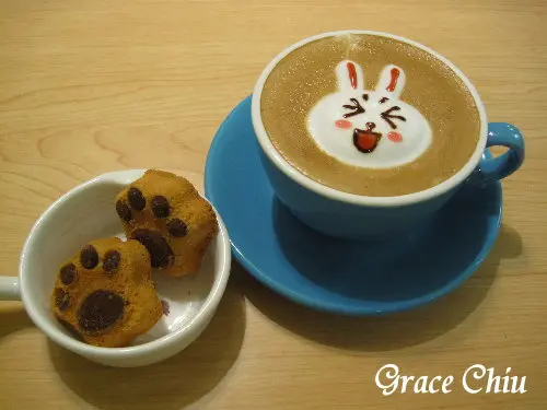 十幾分鐘後我點的立體兔兔卡布咖啡上桌啦~哇哇哇,實在是太可愛啦!很細膩的手藝,可以感覺有用心在畫.