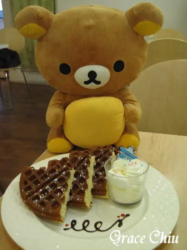 二訪點了鮮奶油鬆餅跟熊大咖啡(我想點的其實是拉拉熊,沒想到點錯,哈),熊大跟拉拉熊的畫工看起來比較簡易一些,但也一樣是能讓人會心一笑的圖案.
