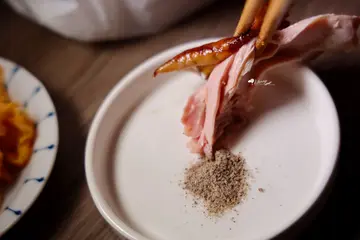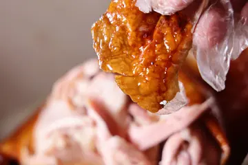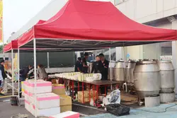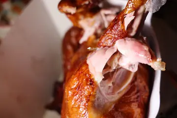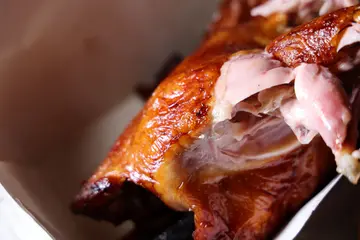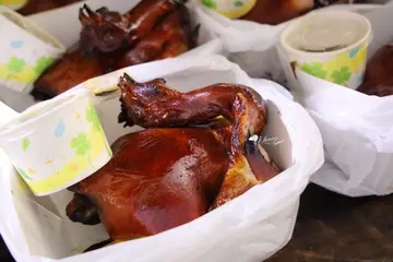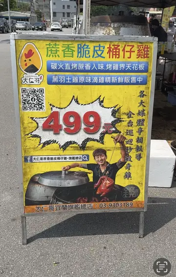 友人一次訂十隻的大仁哥蔗香脆皮桶仔雞,每次開賣都秒殺,真的很難訂到!這次終於巡迴到土城,感謝友人的通知,透過粉絲頁中的免搶購方案,順利搶到朝思暮想的烤雞,真的很開心!而且真的超好吃的啊!友人間好評不斷的大仁哥蔗香脆皮桶仔雞,是流浪餐車的最驚人代表,全台四處巡迴,只要在粉專開放訂購,通常都是秒殺,很難搶得到。巡迴地點請大家鎖定大仁哥蔗香脆皮桶仔雞-林內總店粉絲團。這次謝謝曾訂購過的友人通知即將巡迴的地點就在土城,已經等很久了,所以這次說什麼就要設鬧鐘來搶雞。大仁哥蔗香脆皮桶仔雞|購買方式於是時間快到時,很多人都會提早來報到,並領取號碼牌。大仁哥蔗香脆皮桶仔雞需先網路預訂制,若當日或當場沒人領取才會開放現場客人候補。這次巡迴土城的地點是在中央路二段的LUXGEN廣場,但出入口卻是在中華路上,所以有點混亂,但其實找人群聚集之處,就準沒錯了!由於是先後領取號碼牌,所以人群是較為散開,而非是排長長的人龍。在等待出爐的時候,現場的大仁哥及工作人員,都已事先準備好餐盒,準備一起鍋就可以裝盒。現場一字排開的八個烤爐,真的很壯觀。烤爐經過設計,可以將烤雞的雞油由管道流到下方,而這些精華當然不能浪費。將雞油過濾雜質後,就是純淨的雞油。這些都會以碗盛裝起來,只要買一隻雞就會送上一碗。這天在現場時,發現這籃甘蔗切片,本來以為只是甘蔗皮,但工作人員說是整隻甘蔗連肉一起削皮,如此才能保有甘蔗的甜味,這也是大仁哥蔗香桶仔雞的名稱由來。將甘蔗片放在炭火上一起燒,讓甘蔗的甜味燻到每隻雞裡頭。由於每個烤爐用的都是炭火,而非是瓦斯,因此炭火是烤雞不可或缺的重要角色。在最後要出爐前,見到每位工作人員都忙碌起來,都在往爐裡加木炭。經由好奇寶寶艾方妮詢問後得知,原來這是最後加強火力,可以讓雞皮更酥脆,這就是造就脆皮桶仔雞的最重要關鍵。耶!終於等到桶仔雞出爐了!現場立即彌漫著誘人的香氣,人潮也蠢蠢欲動。據闆娘告知這個雞都是採用溫體的黑羽土雞,在雲林有專門的雞場,自然農法天然飼養。雞隻送達巡迴現場前,都會以特製中藥醃料先醃製過,因此烤出來的雞皮都是金黃酥脆,令人垂涎不已。大仁哥蔗香脆皮桶仔雞 價錢大仁哥蔗香脆皮桶仔雞 $499/隻(2024.08更新)每隻雞都會附上一盒蔗香雞油,這可以拿來拌飯、拌麵或炒茶,都可以增加風味。等出爐後,一袋袋很快就會被預訂的人潮一一帶走,接著就是下一輪的烤雞作業開始。大仁哥及闆娘親自作業,讓取貨流程更加順暢。很多人一次都訂好幾隻雞。兩隻雞似乎都是標配。回到家後,當然要立即享用。在紙盒下附有3個手套及3包胡椒鹽。真心覺得大仁哥的烤雞賣相真的好很多,火力受熱均勻,全雞顯現的都是金黃酥脆,太厲害了!這次的免搶購方案,其實就是一個組合方案,加購三包滴雞精及一罐黃金泡菜。這個方案一點問題也沒有。即將入冬,滴雞精加熱後就可食補,再方便不過。而這罐黃金泡菜,是通過SGS食品安全認證的。這個黃金泡菜爽脆可口,帶著微辣感,吃來超涮嘴。二話不多說,立馬戴起手套開始分解雞。瞧瞧這脆薄的雞皮,以及帶著粉嫩的雞肉,這令人不禁嚥了一下口水啊!這透可見光的雞皮,帶著蔗糖的香氣及甜味,而且還有特別中藥香料的香氣,而那就是像咖哩香料那樣的香氣,不是擾人的中藥味。大仁哥蔗香脆皮桶仔雞的雞肉已有入味,但若重口味的人,沾點胡椒鹽就可以增加風味。大家真的可以加購黃金泡菜,搭配烤雞一起吃,完全可以解膩,脆香的口感更令人停不下來!大仁哥蔗香脆皮桶仔雞真的名不虛傳啊!就連雞胸的部份都不柴,沾點雞油一起來很油潤,香氣飽滿,真的好讚!最重要的是吃雞腳的時候,最能品嚐出中藥香料的香氣,真的超特別!在外帶的袋上寫著<大仁哥一直被模仿從未被超越~>,目前為止,個人對這句話給予正面的評價,真的這樣的水準,很難被超越。若想品嚐這美味的桶仔雞,一定要鎖定他們的粉絲團,據知搶到頭香的人,可以免費吃雞喔!…查看更多