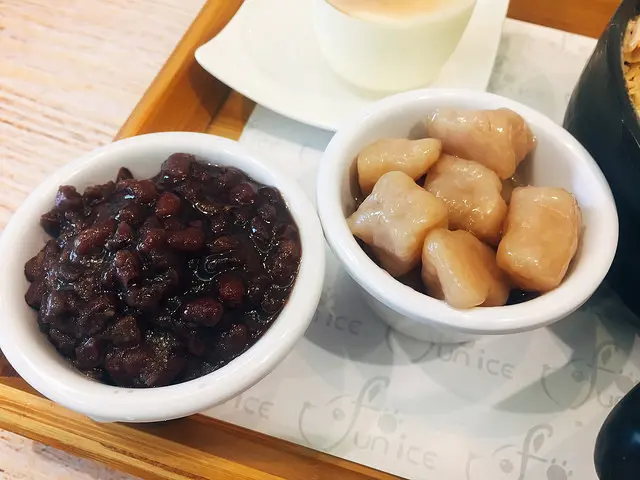 我選擇的配料是:紅豆跟芋圓