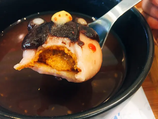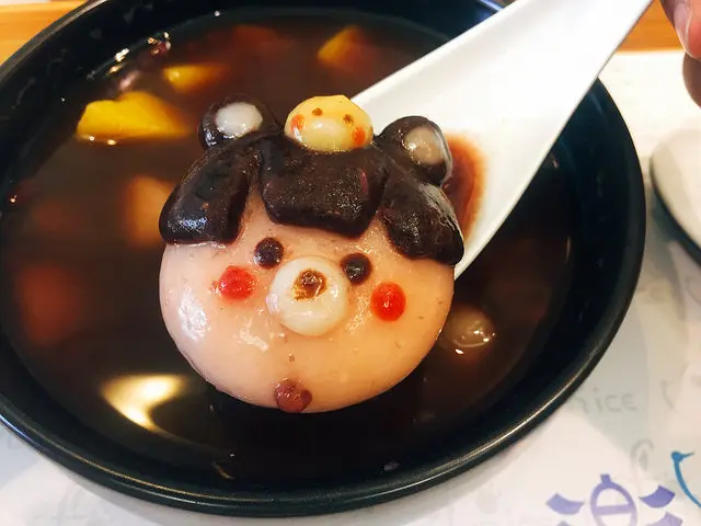 而且不只是一般的甜湯而已,是老闆花費很多心思獨創的熊熊湯圓