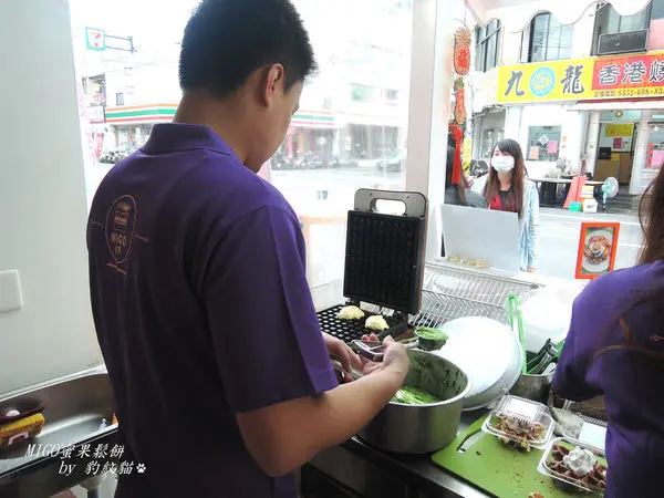 接單後只見老闆專注地開始烘烤鬆餅,在假日的午後,現場排隊購買或是預約外帶的客人還算不少,所以阿貓也稍稍等候了一些時間。