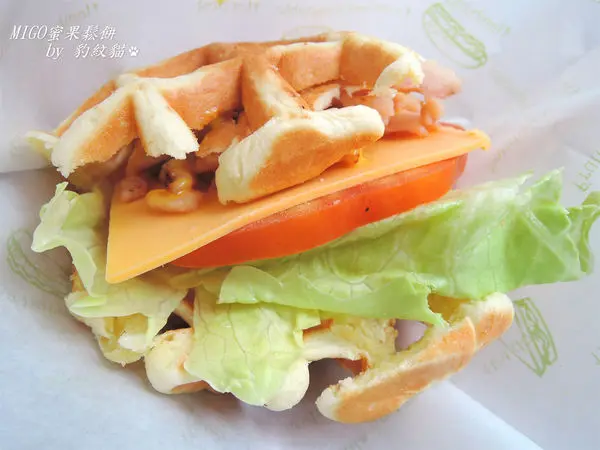 因為午餐沒吃就跑來員林,就挑了創意鬆餅堡來墊個胃。【MIGO蜜果鬆餅】用鬆餅代替傳統漢堡包,鬆軟帶Q的口感,少了漢堡包的乾澀,變得更順口。煙燻雞肉配上香濃起司,以及清爽的生菜、番茄,最後由柔和的芥末醬提味,創意的搭配組合,爆發令人意外的好滋味!
