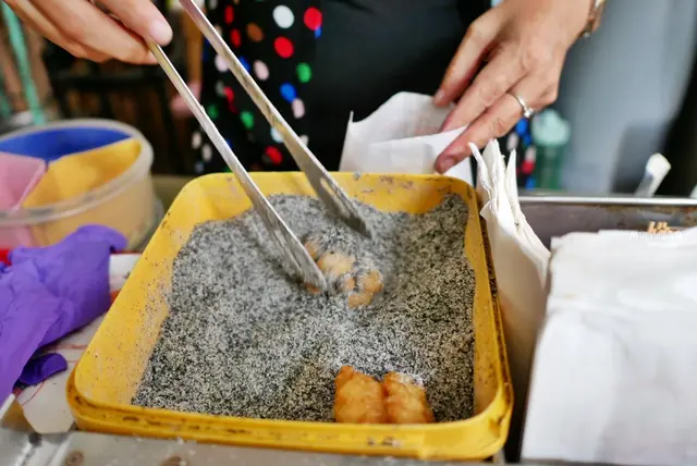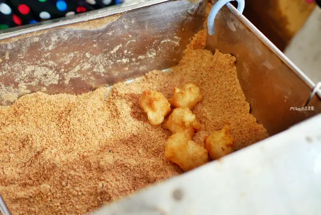 這家是在地人的下午茶小點心,口感有點像白糖粿,但又比白糖粿更實心軟Q一點,採用糯米糰也就是麻糬下鍋油炸,就是療癒的台味小點心,尤其是炸過後那外酥內軟Q的口感超愛,裹上花生或芝麻香氣更香甜,簡單但又讓人會忍不住想念的美味。